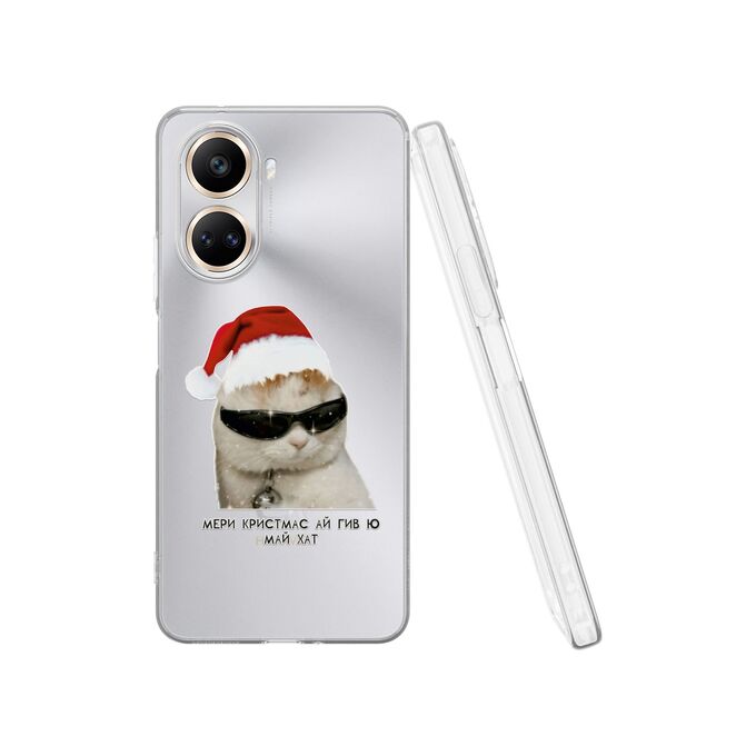 Силиконовый чехол DesignOnCase для Nova 10 SE (Нова 10 СЕ), с принтом Новогодний, Мем, Кот, Мери кристмас