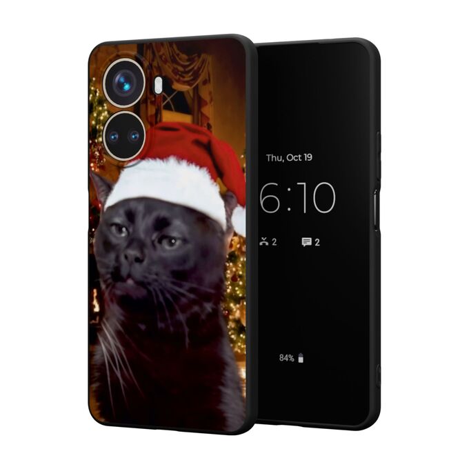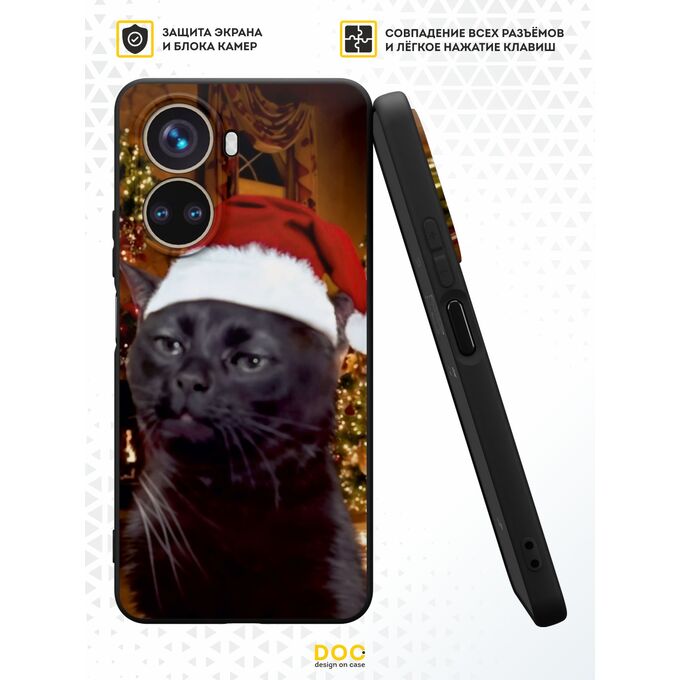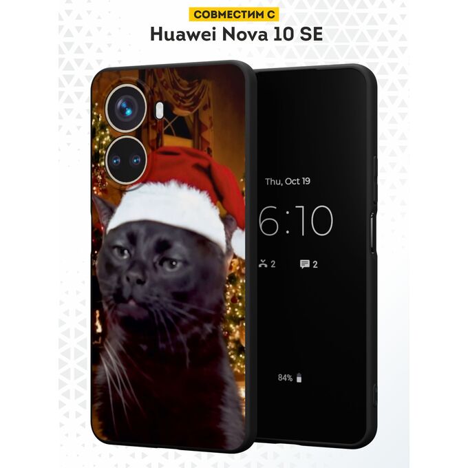 Силиконовый чехол DesignOnCase для Nova 10 SE (Нова 10 СЕ), с принтом Новогодний, Мемный кот