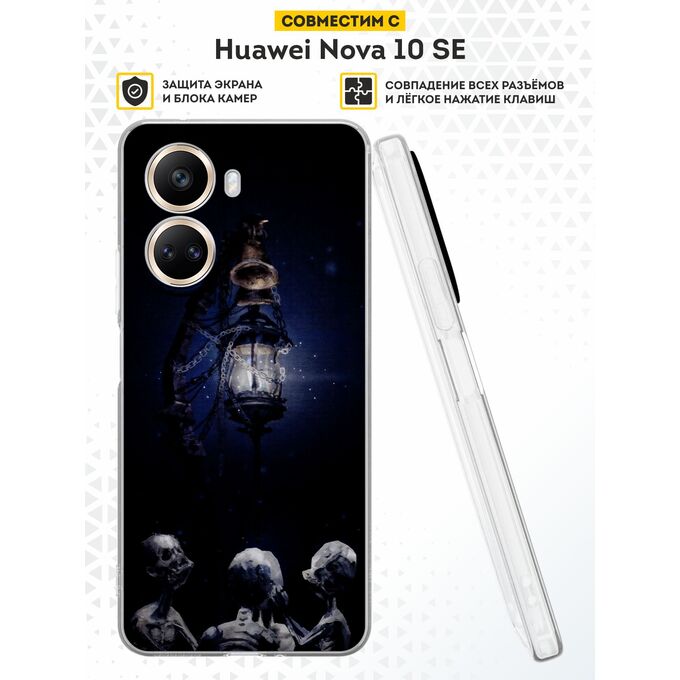 Силиконовый чехол DesignOnCase для Nova 10 SE (Нова 10 СЕ), Скелеты вокруг фонаря