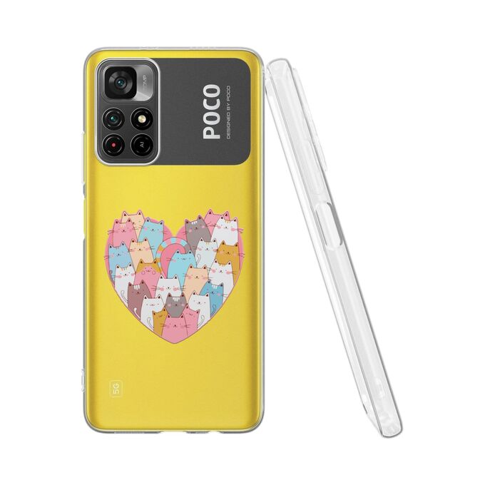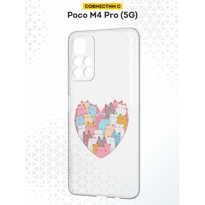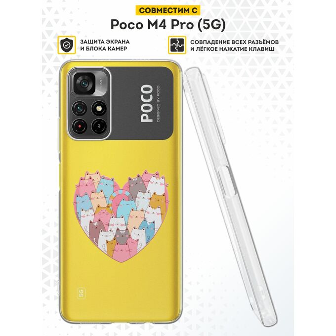 Силиконовый чехол DesignOnCase для Poco M4 Pro 5G (Поко М4 Про 5Джи), Сердце и коты