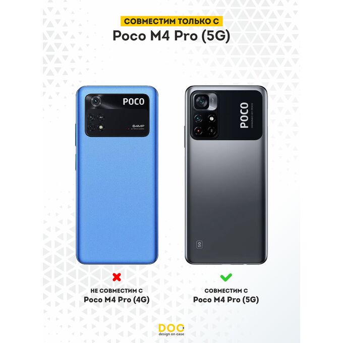 Чехол для смартфона Poco M4 Pro 5G - неотъемлемый аксессуар каждого современного человека. Премиальные износостойкие краски и лаки, качественные материалы изделия, японское оборудование и контроль качества производства - это то, что позволяет нам выгодно выделяться среди конкурентов и производить не только красивые, но тактильно приятные чехлы для Поко М4 Про 5Джи, которые долгое время не теряют первоначального вида.