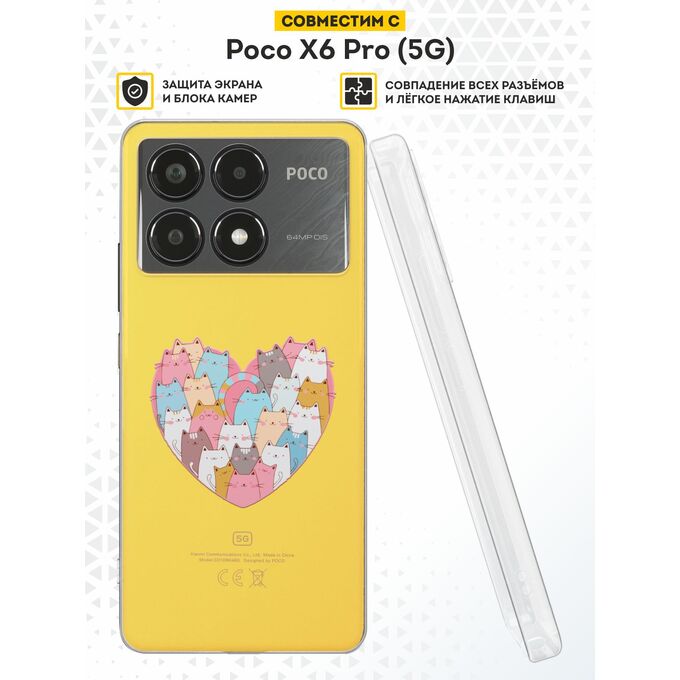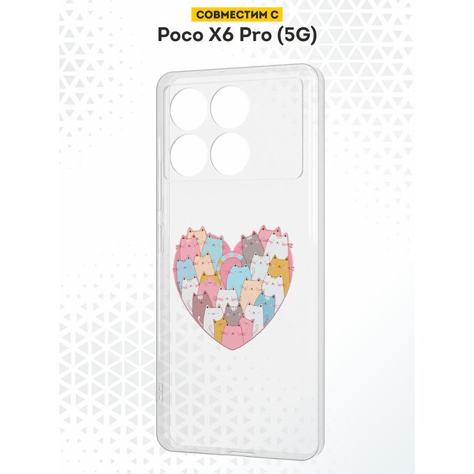 Силиконовый чехол DesignOnCase для Poco X6 Pro (5G) (Поко Икс 6 Про 5Джи), Сердце и коты