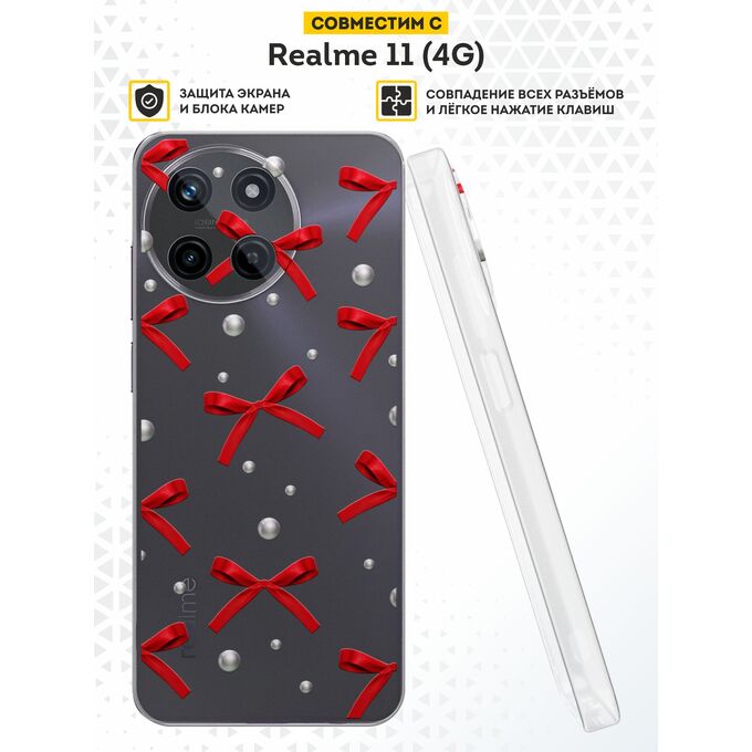 Силиконовый чехол DesignOnCase для Realme 11 (4G) (Риалми 11 4Джи), Красные бантики