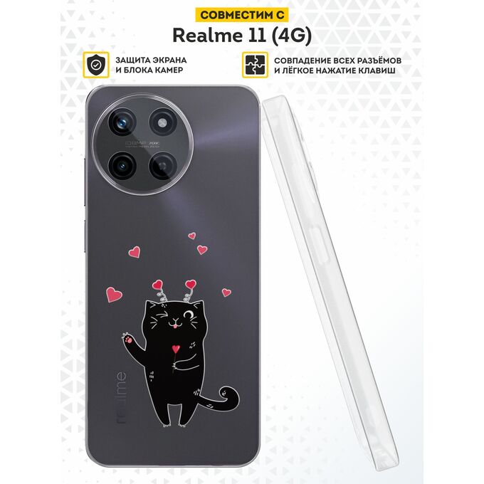 Силиконовый чехол DesignOnCase для Realme 11 (4G) (Риалми 11 4Джи), Романтичный кот