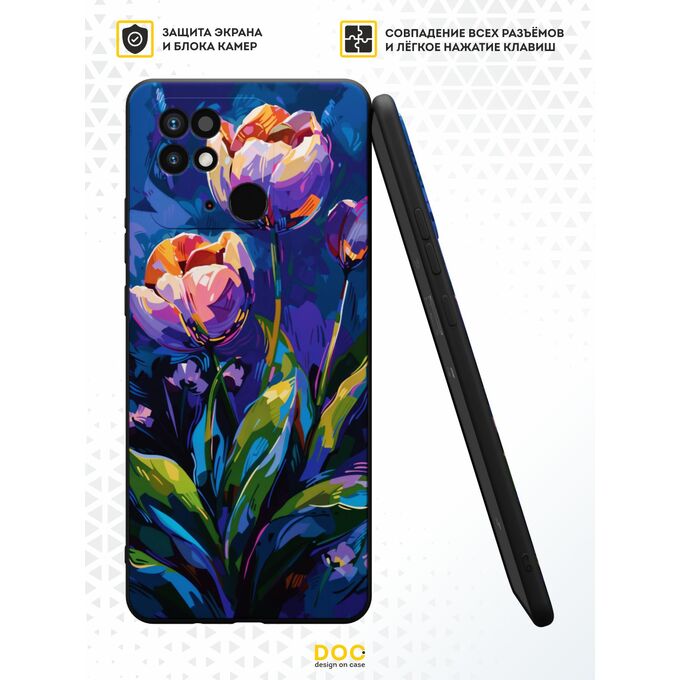Силиконовый чехол DesignOnCase для Redmi 10C/Poco C40 (Редми 10C), Нарисованные цветы