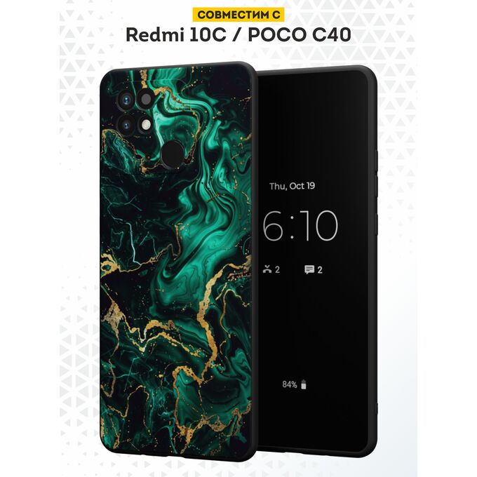 Силиконовый чехол DesignOnCase для Redmi 10C/Poco C40 (Редми 10C), Зеленый мрамор