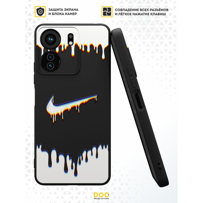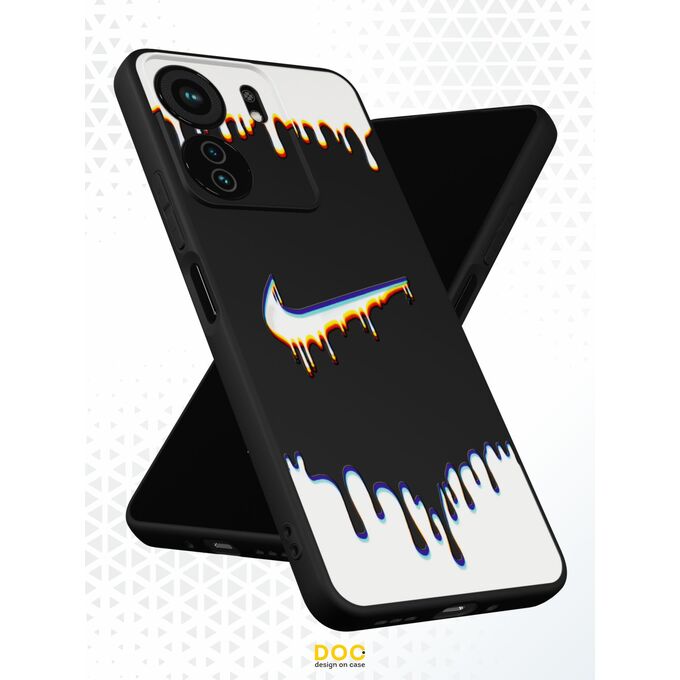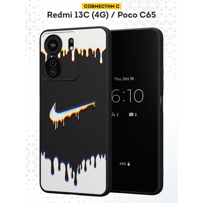 Силиконовый чехол DesignOnCase для Redmi 13C (Редми 13Ц), Черно-белый найк