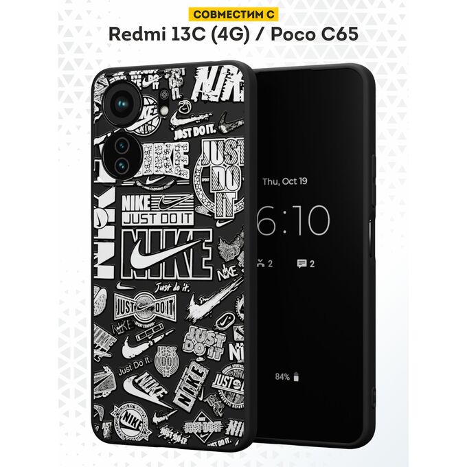 Силиконовый чехол DesignOnCase для Redmi 13C (Редми 13Ц), Найк: джаст ду ит