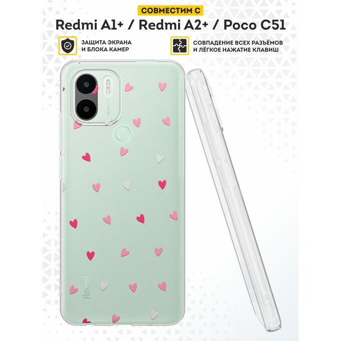 Силиконовый чехол DesignOnCase для Redmi A1+ (Редми А1 Плюс), Множество сердечек