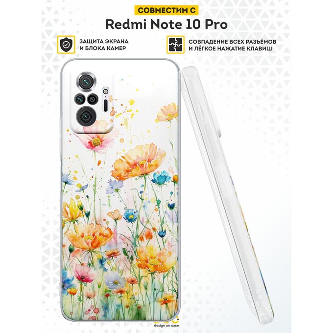 Силиконовый чехол DesignOnCase для Redmi Note 10 Pro (Редми Нот 10 Про), Цветы акварель v.1