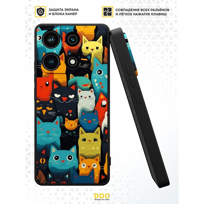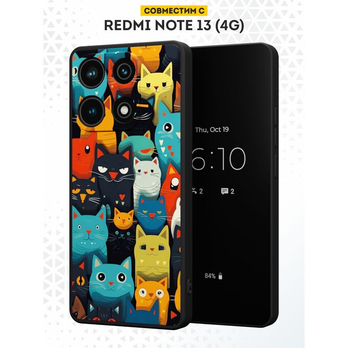 Силиконовый чехол DesignOnCase для Redmi Note 13 (4G) (Редми Нот 13 4Джи), Разноцветные коты