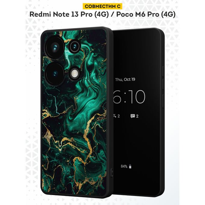 Силиконовый чехол DesignOnCase для Redmi Note 13 Pro (4G) / Poco M6 Pro (4G) (Редми Нот 13 Про 4Джи и Поко М6 Про 4Джи), Зеленый мрамор