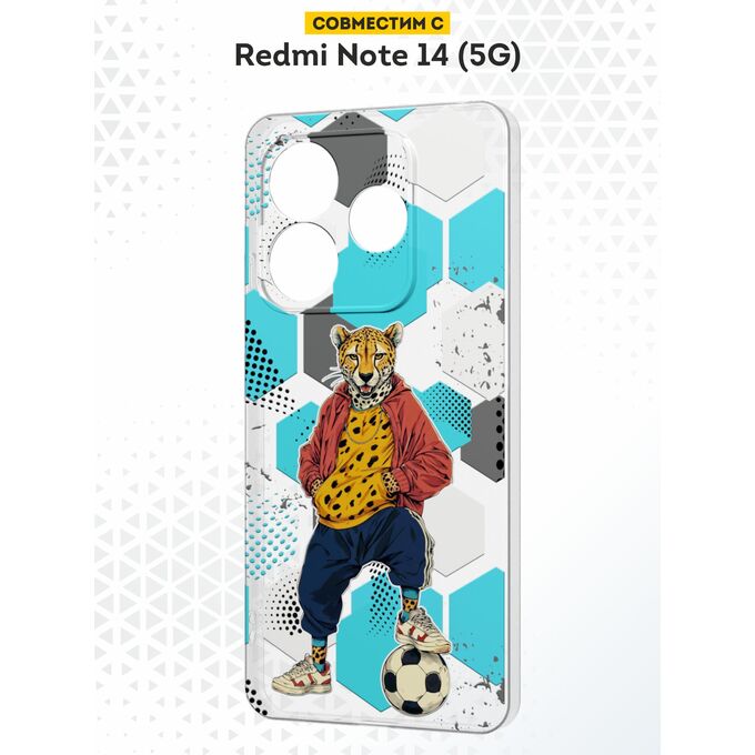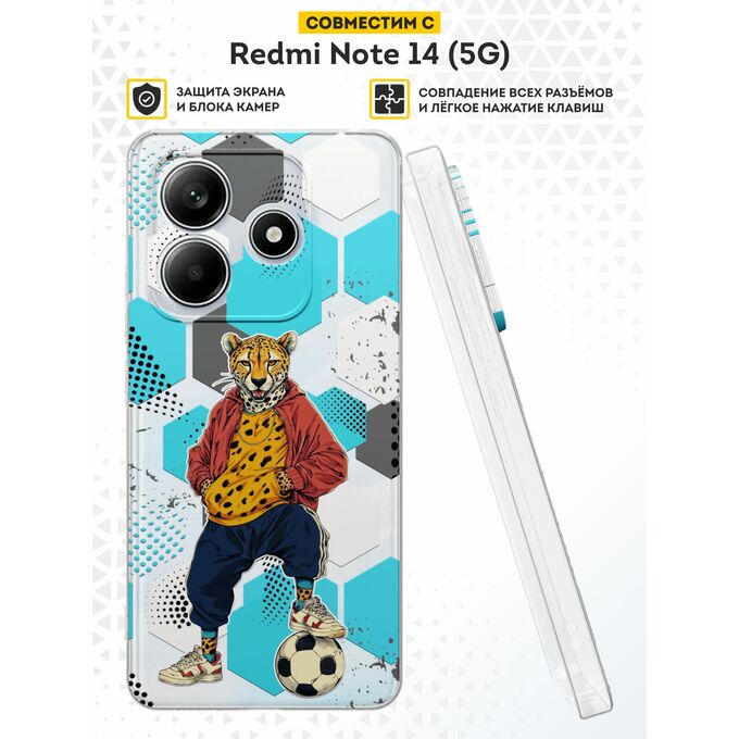 Силиконовый чехол DesignOnCase для Redmi Note 14 (5G) (Редми Нот 14 5Джи), Гепард футболист
