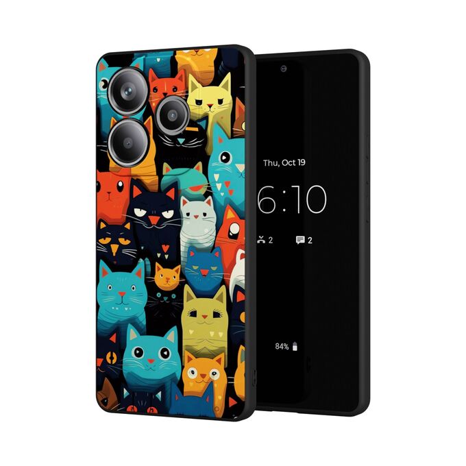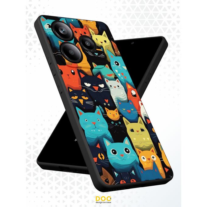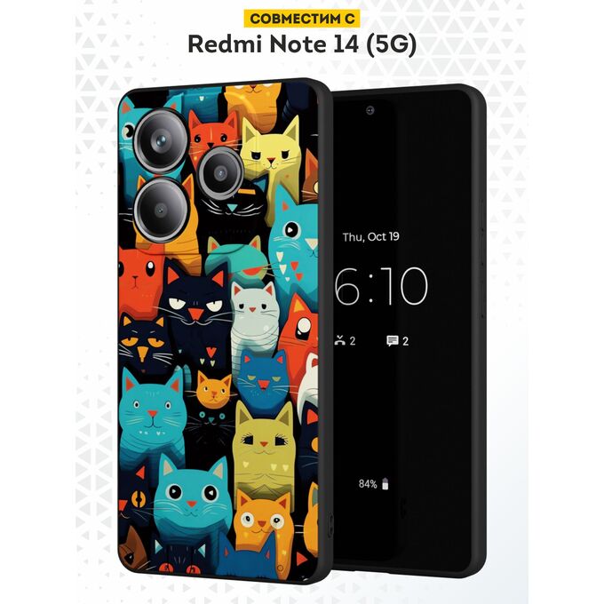 Силиконовый чехол DesignOnCase для Redmi Note 14 (5G) (Редми Нот 14 5Джи), Разноцветные коты