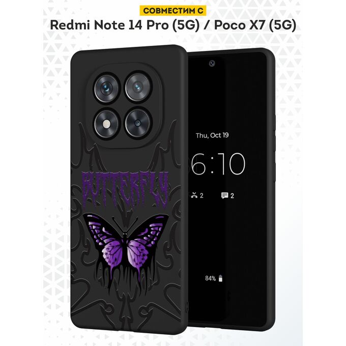 Силиконовый чехол DesignOnCase для Redmi Note 14 Pro (5G) / Poco X7 (5G) (Редми Нот 14 Про 5Джи и Поко Икс7 5Джи), Buterfly