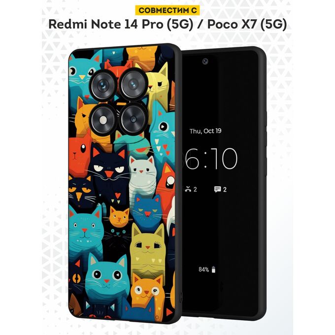 Силиконовый чехол DesignOnCase для Redmi Note 14 Pro (5G) / Poco X7 (5G) (Редми Нот 14 Про 5Джи и Поко Икс7 5Джи), Разноцветные коты