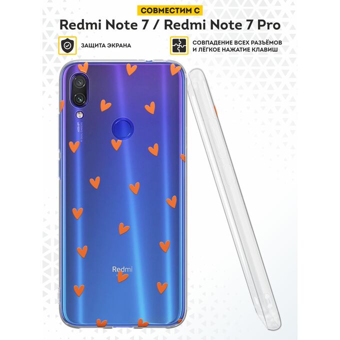 Силиконовый чехол DesignOnCase для Redmi Note 7 (Редми 7), Много сердечек