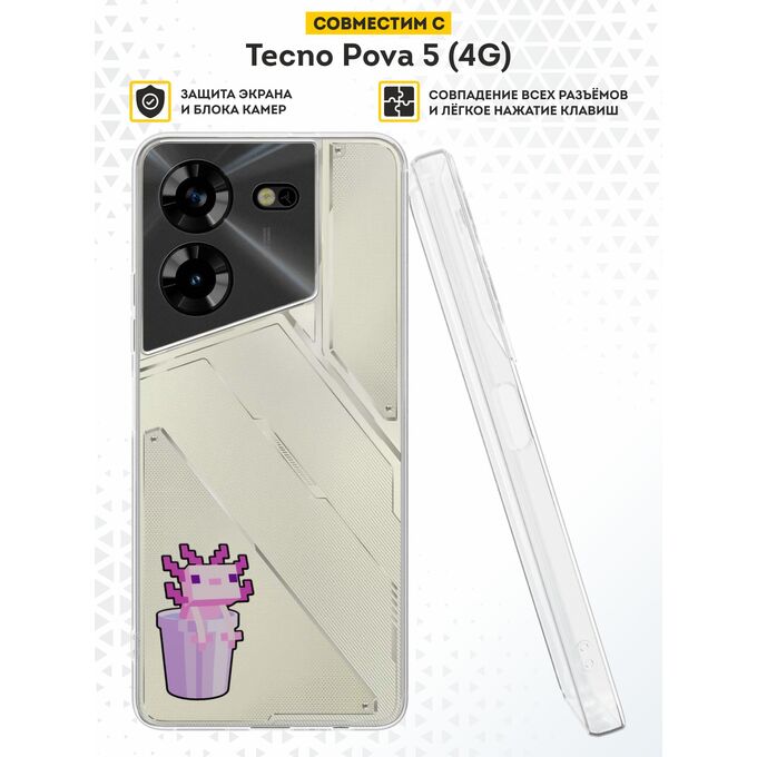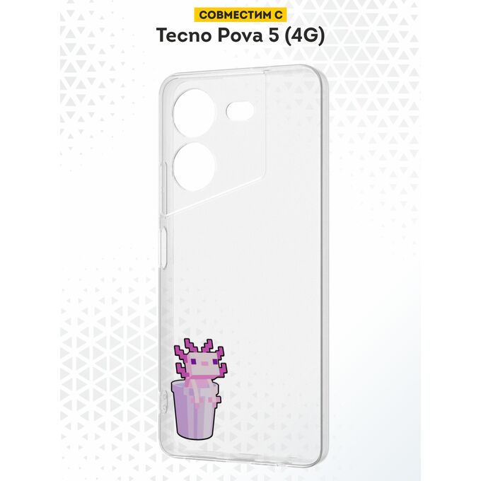 Силиконовый чехол DesignOnCase для Tecno Pova 5 (4G) (Техно Пова 5), Аксолотль в ведре