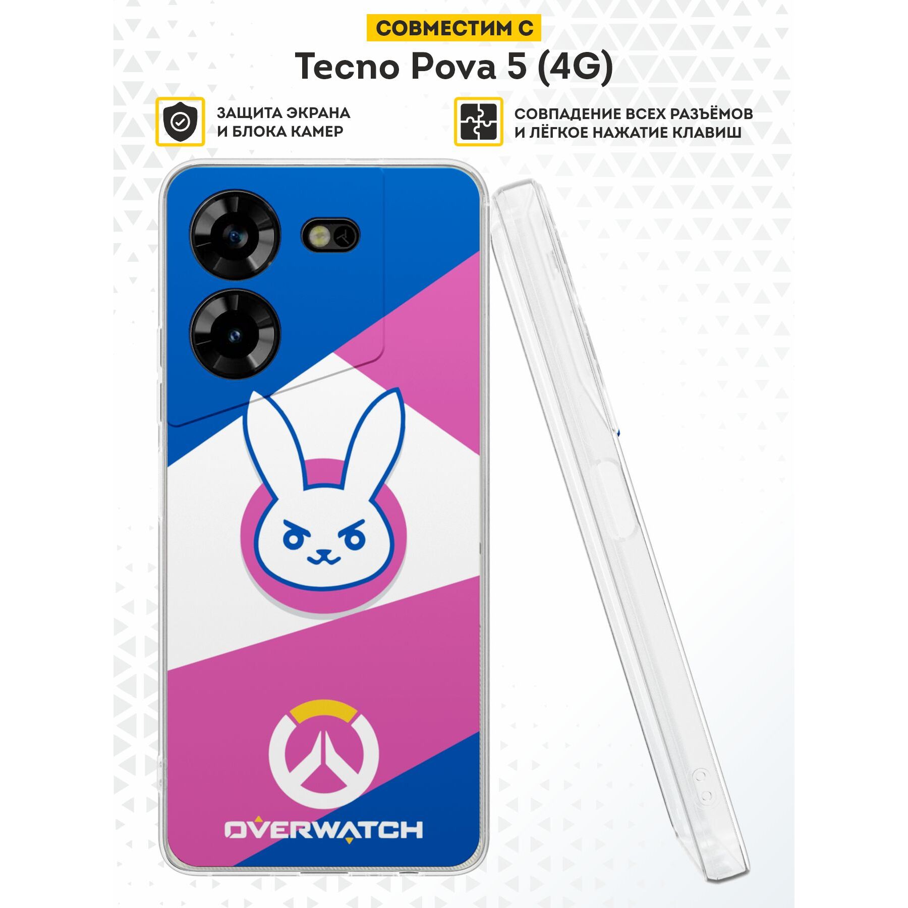 Силиконовый чехол DesignOnCase для Tecno Pova 5 (4G) (Техно Пова 5), Овервотч зайчик