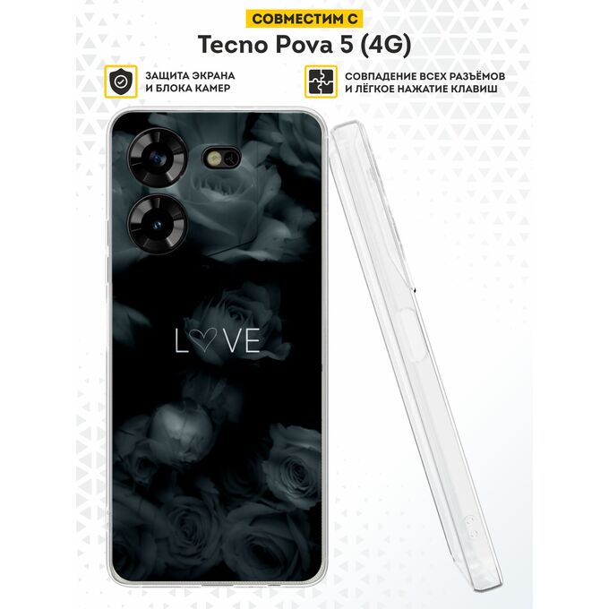 Силиконовый чехол DesignOnCase для Tecno Pova 5 (4G) (Техно Пова 5), Розы и любовь