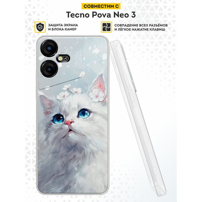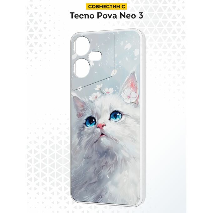 Силиконовый чехол DesignOnCase для Tecno Pova Neo 3 (Техно Пова Нео 3), Белый кот