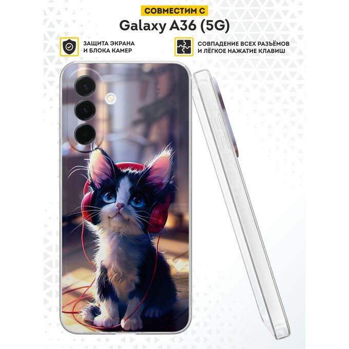 Силиконовый чехол DesignOnCase на Galaxy A36 (5G), с защитой камеры, Кот и музыка