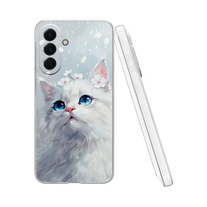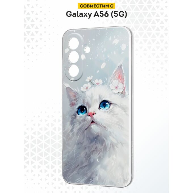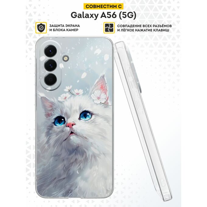 Силиконовый чехол DesignOnCase на Galaxy A56 (5G), с защитой камеры, Белый кот