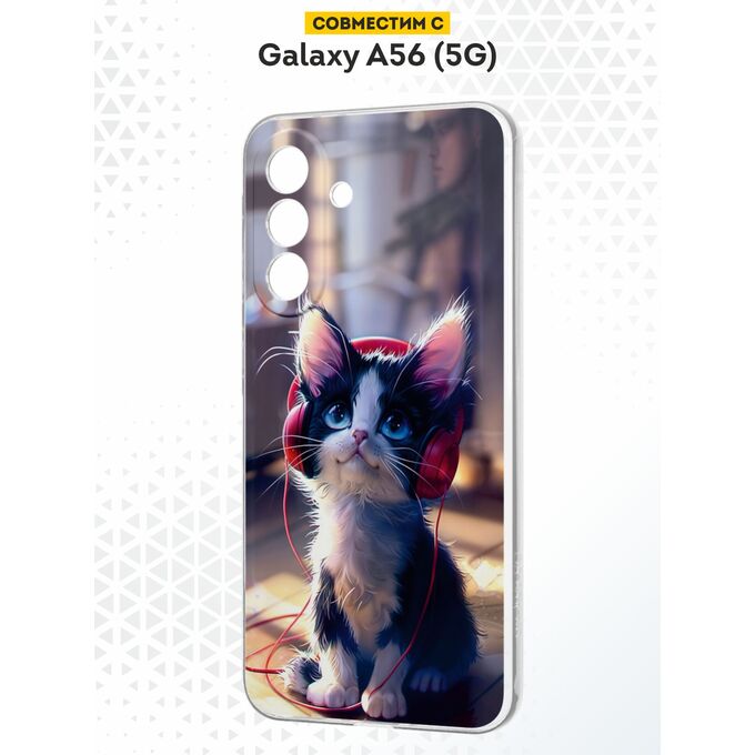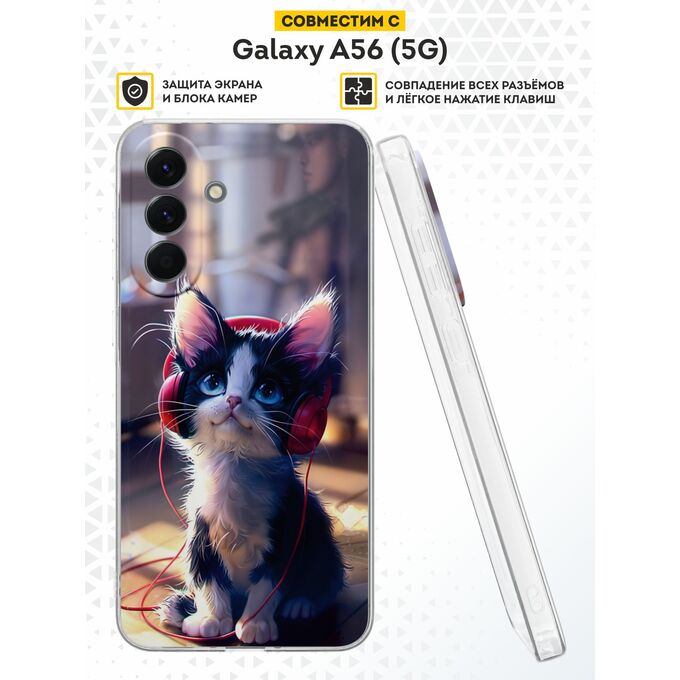 Силиконовый чехол DesignOnCase на Galaxy A56 (5G), с защитой камеры, Кот и музыка