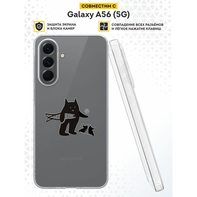 Силиконовый чехол DesignOnCase на Galaxy A56 (5G), с защитой камеры, Котик к рыбкой