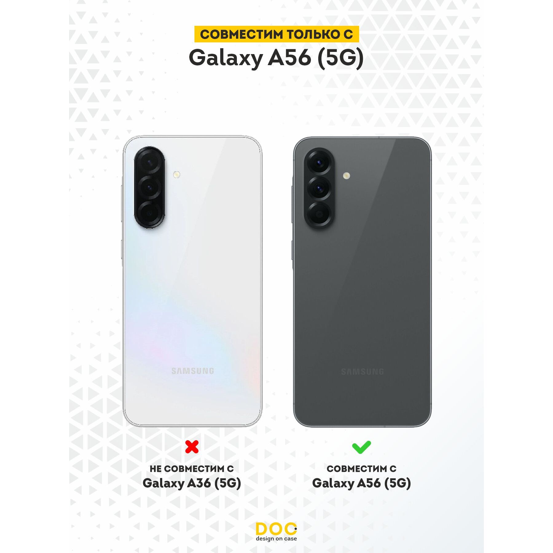 Силиконовый чехол для смартфона Samsung Galaxy A56 5G - это стильное дополнение и надежная защита для вашего смартфона. Изготовлен из прочного силикона, который устойчив к потертостям, царапинам, и другим повреждениям, что даёт вам возможность на долгий срок службы устройства. Дизайн чехла придется по вкусу самым требовательным покупателям. Наша команда дизайнеров создает уникальные принты и рисунки, которые не оставят равнодушными окружающих. Благодаря износостойким краскам и лакам, он всегда будет выглядеть свежим и новым даже после длительной эксплуатации. Особенностью чехла от бренда DesignOnCase является его идеальное прилегание к смартфону, повторяющее его контуры. Это обеспечивает не только эстетичный вид, но и полный доступ к функциям и портам вашего телефона.