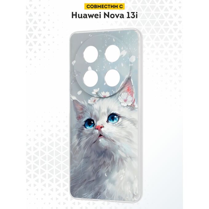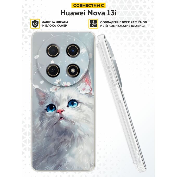 Силиконовый чехол DesignOnCase на Huawei Nova 13i, Белый кот