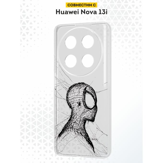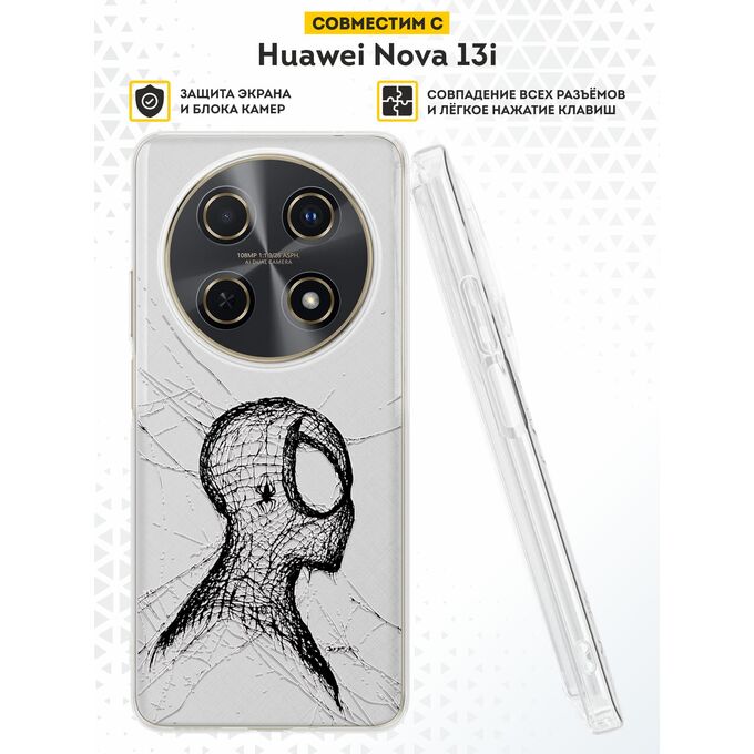Силиконовый чехол DesignOnCase на Huawei Nova 13i, Человек-паук ч/б