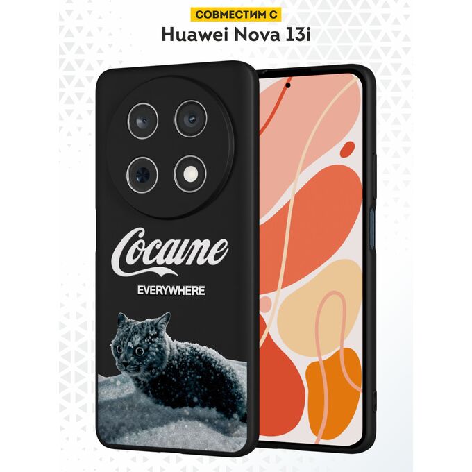 Силиконовый чехол DesignOnCase на Huawei Nova 13i, черный, с принтом Кот и кокаин (не публиковать)