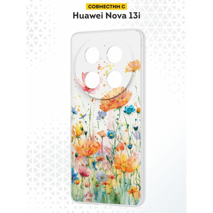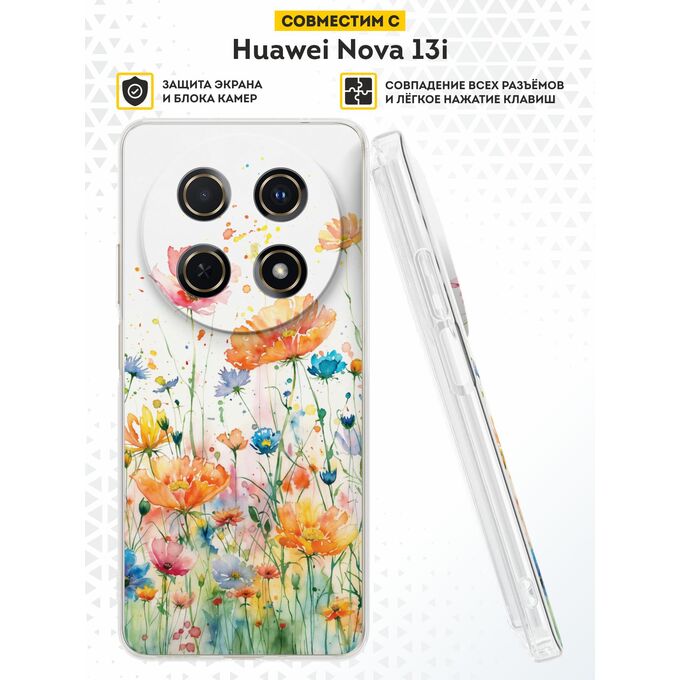 Силиконовый чехол DesignOnCase на Huawei Nova 13i, Цветы акварель v.1