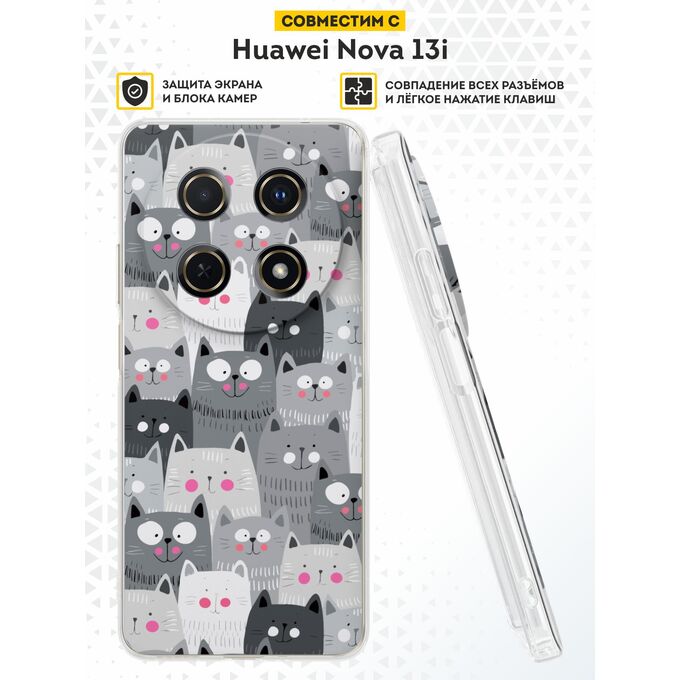 Силиконовый чехол DesignOnCase на Huawei Nova 13i, Довольные коты