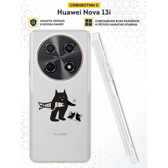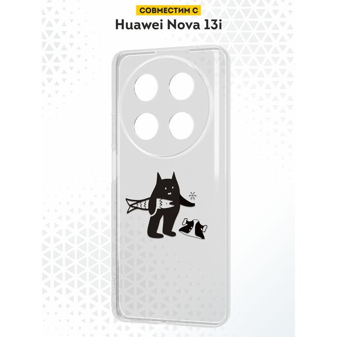 Силиконовый чехол DesignOnCase на Huawei Nova 13i, Котик к рыбкой