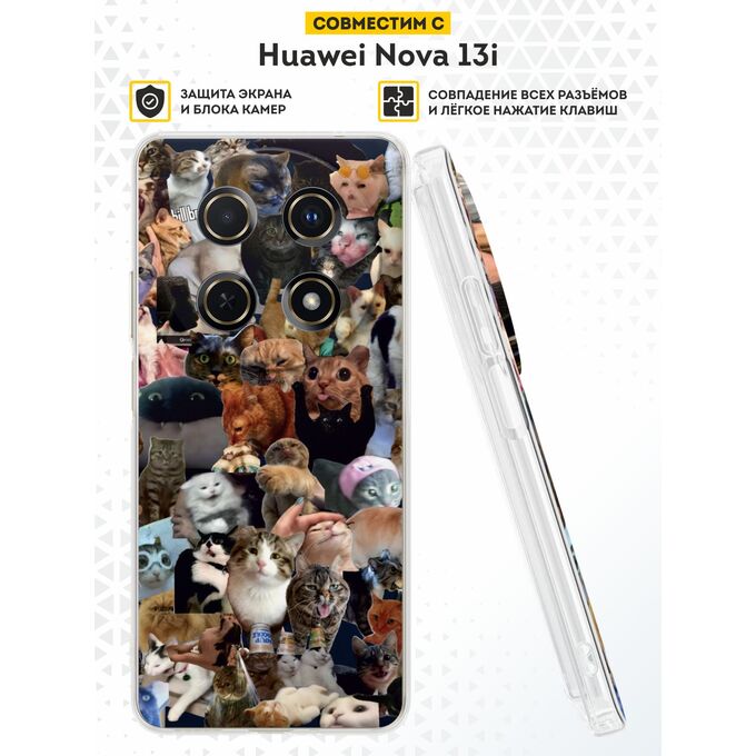 Силиконовый чехол DesignOnCase на Huawei Nova 13i, Много котов