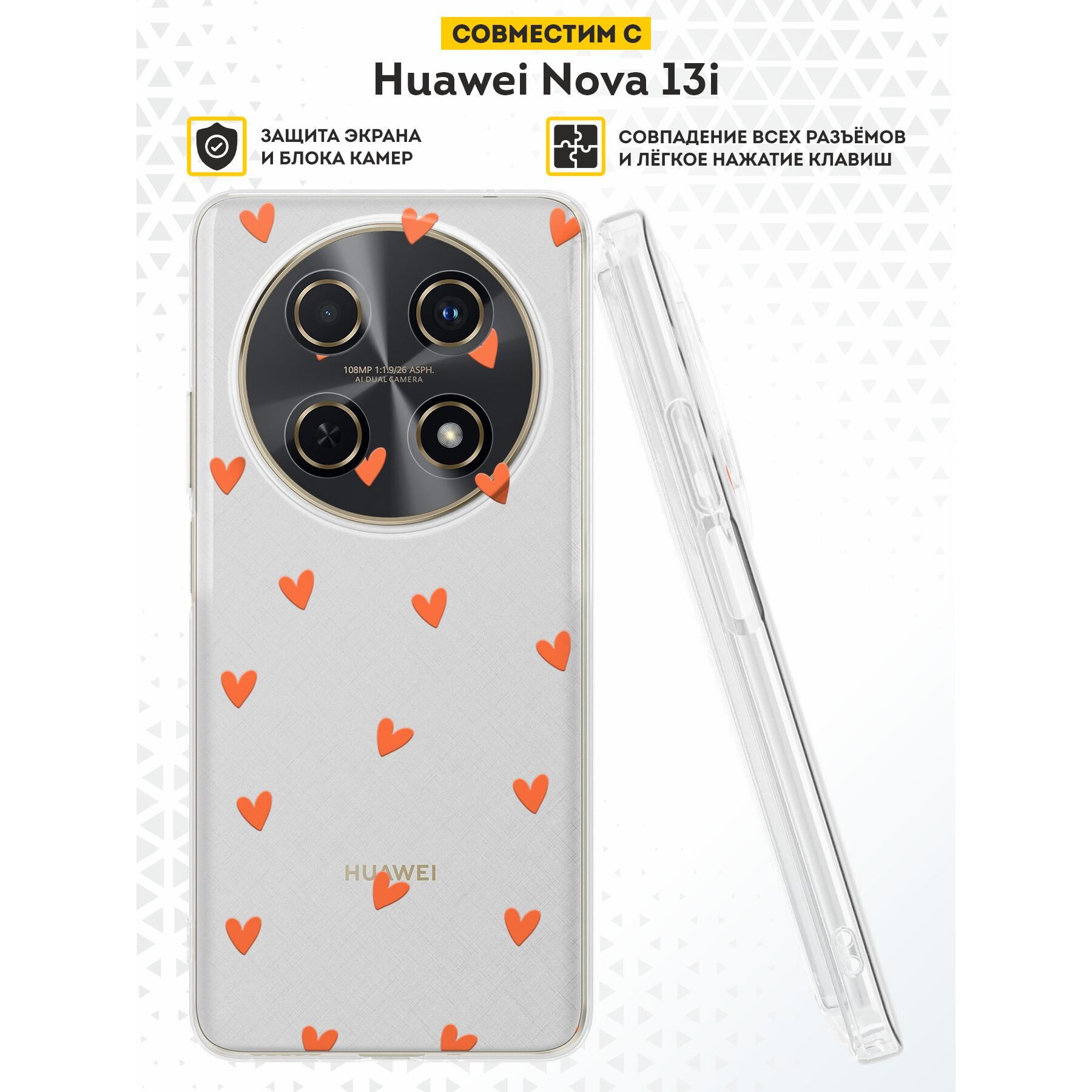 Силиконовый чехол DesignOnCase на Huawei Nova 13i, Много сердечек