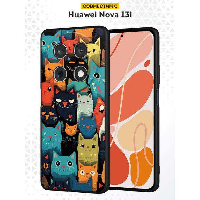 Силиконовый чехол DesignOnCase на Huawei Nova 13i, Разноцветные коты