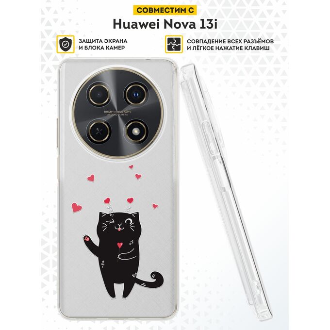 Силиконовый чехол DesignOnCase на Huawei Nova 13i, Романтичный кот