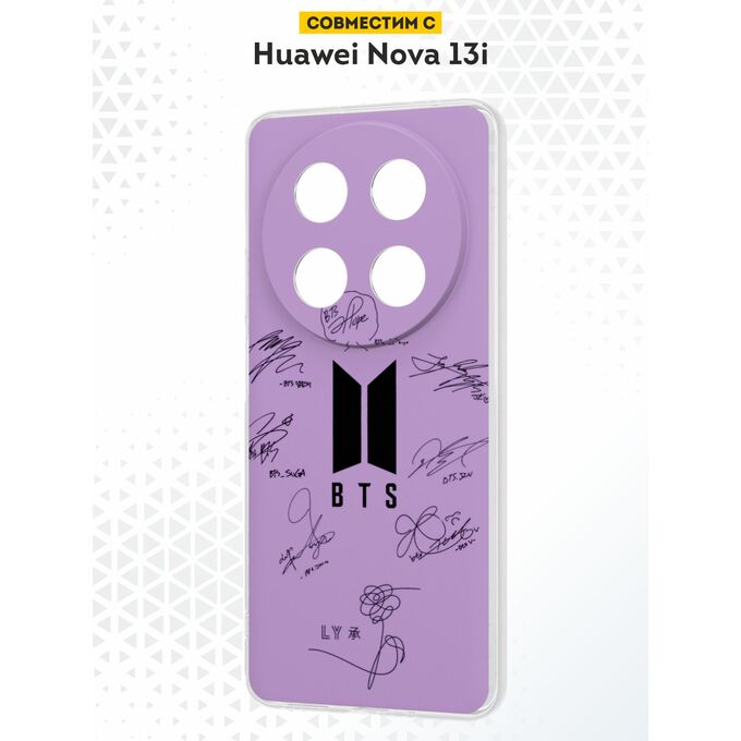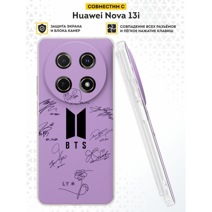 Силиконовый чехол DesignOnCase на Huawei Nova 13i, с принтом Автографы БТС