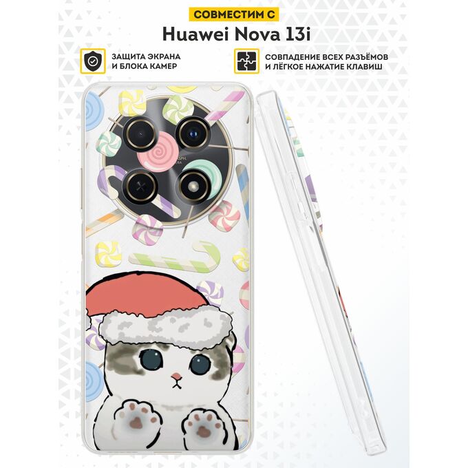 Силиконовый чехол DesignOnCase на Huawei Nova 13i, с принтом Новогодний, Котенок, Милота
