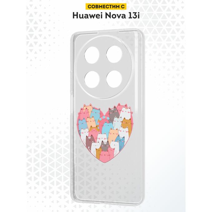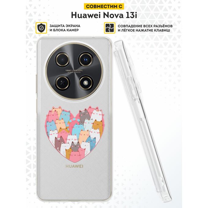 Силиконовый чехол DesignOnCase на Huawei Nova 13i, Сердце и коты