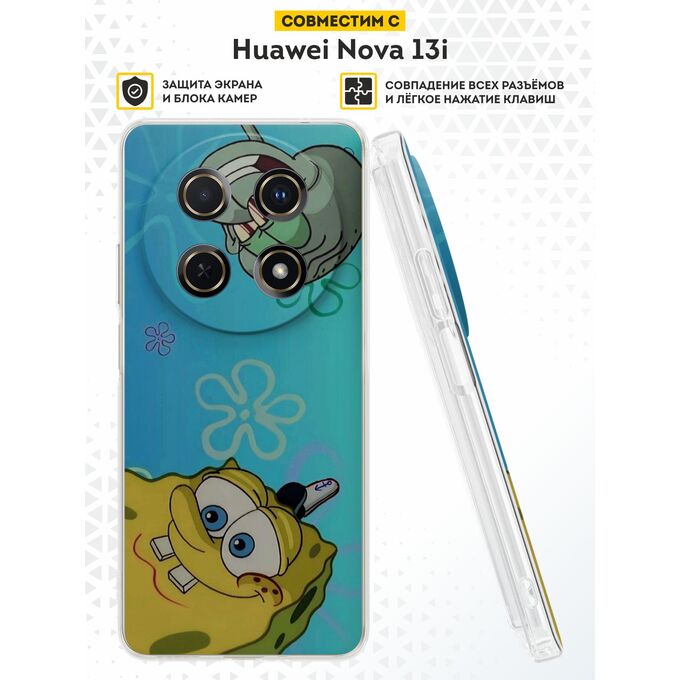 Силиконовый чехол DesignOnCase на Huawei Nova 13i, Спанч Боб и Сквидвард