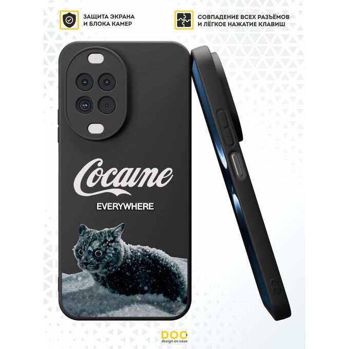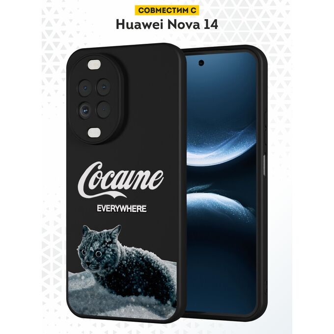 Силиконовый чехол DesignOnCase на Huawei Nova 14, черный, с принтом Кот и кокаин (не публиковать)