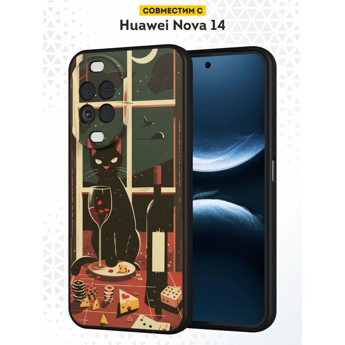 Силиконовый чехол DesignOnCase на Huawei Nova 14, Кот и вино