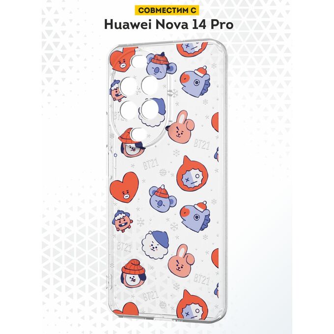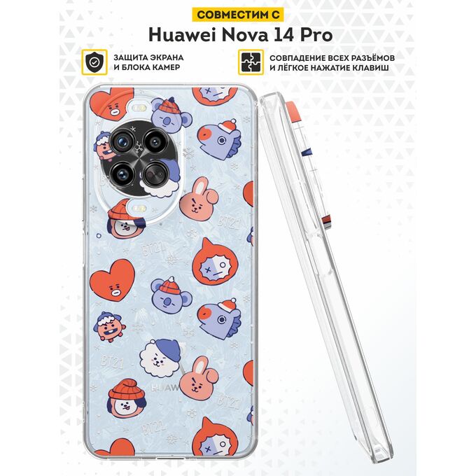 Силиконовый чехол DesignOnCase на Huawei Nova 14 Pro (Хуавей нова 14 про) с принтом Новогодний, БТС, BTS, к-поп, BT21