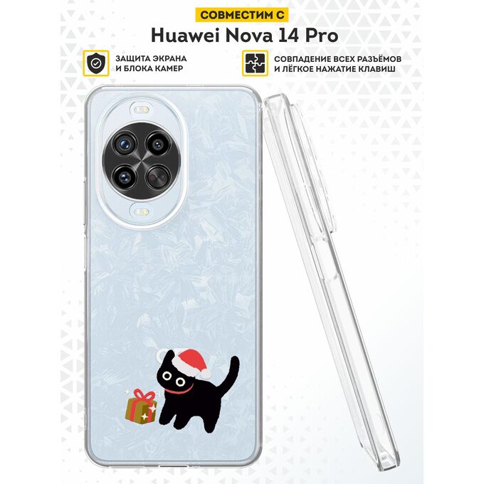 Силиконовый чехол DesignOnCase на Huawei Nova 14 Pro (Хуавей нова 14 про) с принтом Новогодний, Черный кот, Подарок