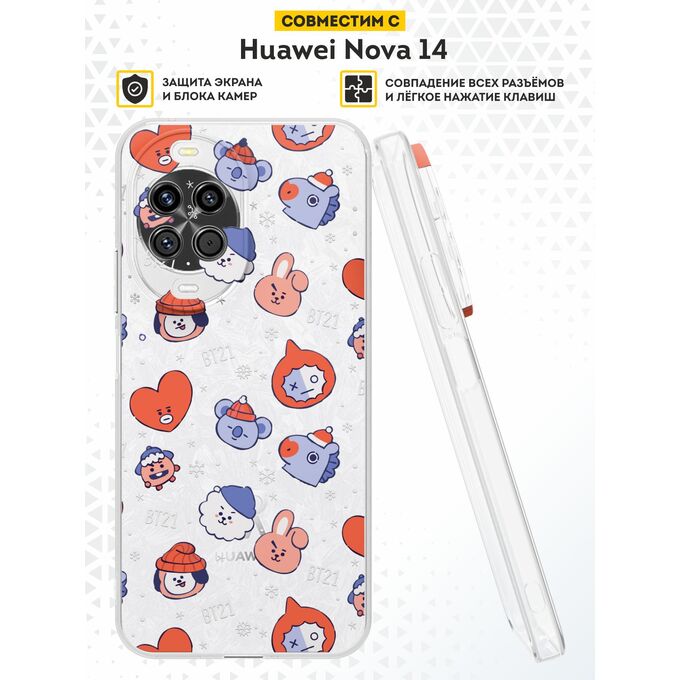 Силиконовый чехол DesignOnCase на Huawei Nova 14, с принтом Новогодний, БТС, BTS, к-поп, BT21