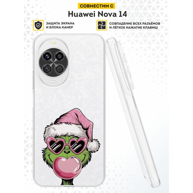 Силиконовый чехол DesignOnCase на Huawei Nova 14, с принтом Новогодний, Гринч, Мультик